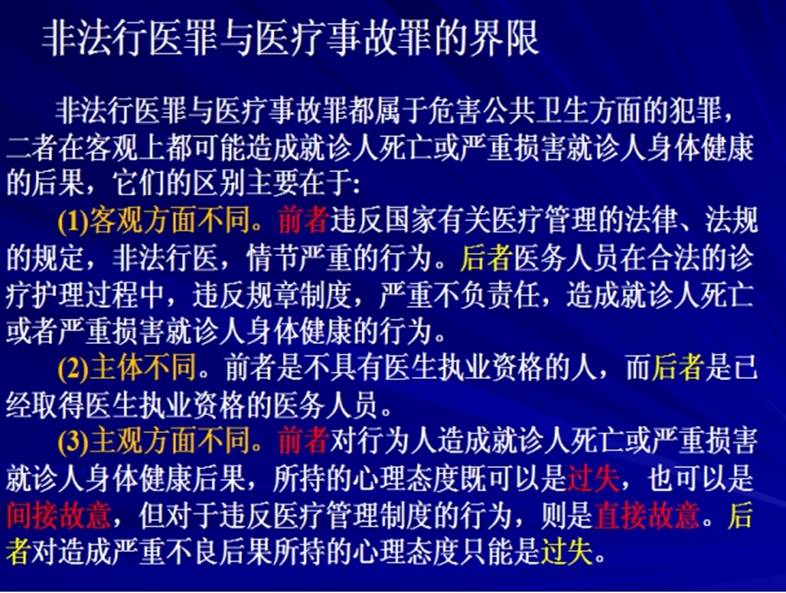 了解执业医师法的适用范围;医师的执业规则。案例分析:以案说法,依法定罪。拓展学生的知识面,提高学生运用知识分析问题、解决问题的能力。