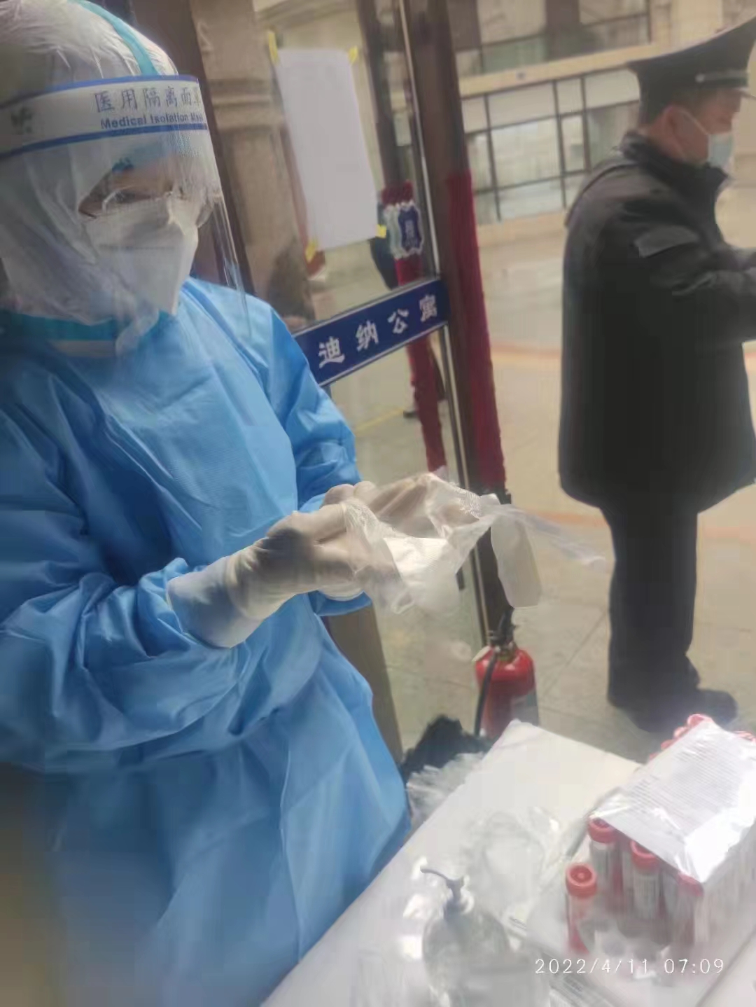 孙璋老师、西玉立老师、周洋老师、王海艳老师也多次响应号召,积极参加疫情防控工作,3月30日晚市里下发连夜采集核酸任务,她们主动请缨加入到采集核酸队伍中,她们完成采集核酸任务后,严格核对信息,记录好管数和人数,做好标本交接和垃圾交接,已经是凌晨了,那时道路没有一辆车辆,她们没有一句怨言,因为她们知道穿上这一身白服,是她们的责任。