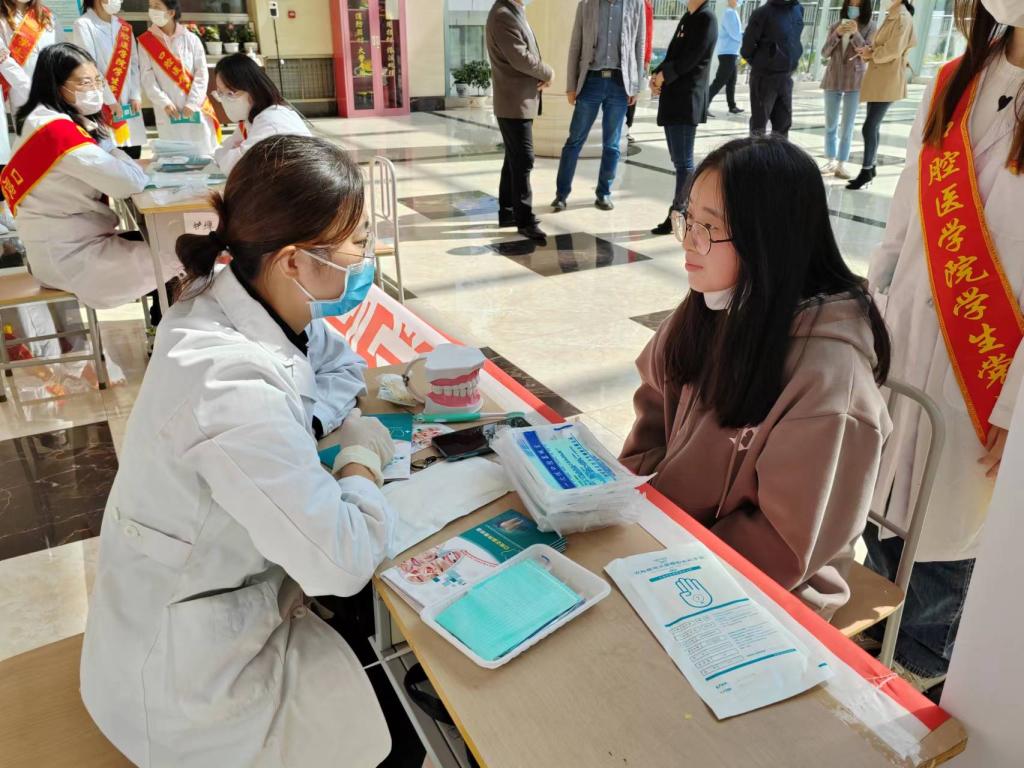 9月20日是第34个“全国爱牙日”,为普及爱齿护齿知识,提高口腔健康水平,口腔医学院党总支开展“青春献礼二十大,一片丹心在‘齿’间”义诊活动。校宣传统战部部长俞春利莅临现场进行指导,口腔医学院党总支书记钱锐、院长石屹、党总支副书记关跃出席本次活动。