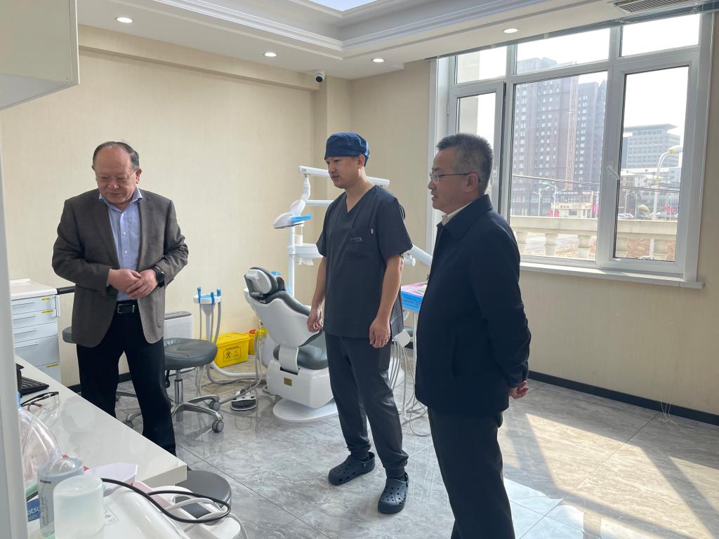 姚胜强对门诊规模、基础设备、医师资质进行介绍,并表示欢迎口腔医学专业毕业生前来实习和就业。随后张德才介绍了学校的培养目标、办学特色,他强调本次访企拓岗目的在于深入了解用人单位对毕业生的需求,广泛采纳用人单位意见,为人才培养提供方向。石屹表示希望与瑞美口腔门诊有限公司建立联系,让学生多层面接触临床增加实习经验,同时拓展毕业生就业渠道。关跃对毕业生基本情况及就业意向进行说明,就实习合作、招聘待遇等事宜进行交流。最后,一行人参观了瑞美口腔门诊有限公司的诊室环境及诊疗设备。