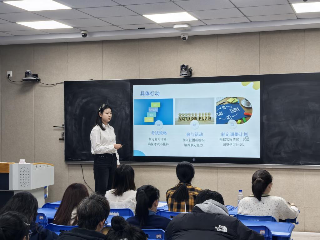 本次比赛分为主题陈述、评委提问、综合评估三个环节。参赛选手通过PPT展示自己的职业规划,围绕自我分析、环境评估、职业认知、发展路径、实施方案等方面展开详细论述。他们深入剖析自我,从性格特点、能力优势等方面进行全面解读,结合社会发展趋势和市场需求,详细阐述了自己的职业目标、规划路径和动态实施计划。评委围绕参赛选手陈述内容进行提问,对选手们的精彩表现给予了充分肯定,同时也对生涯规划中存在的问题提出了意见和建议,这些专业的指导意见让同学们受益匪浅。