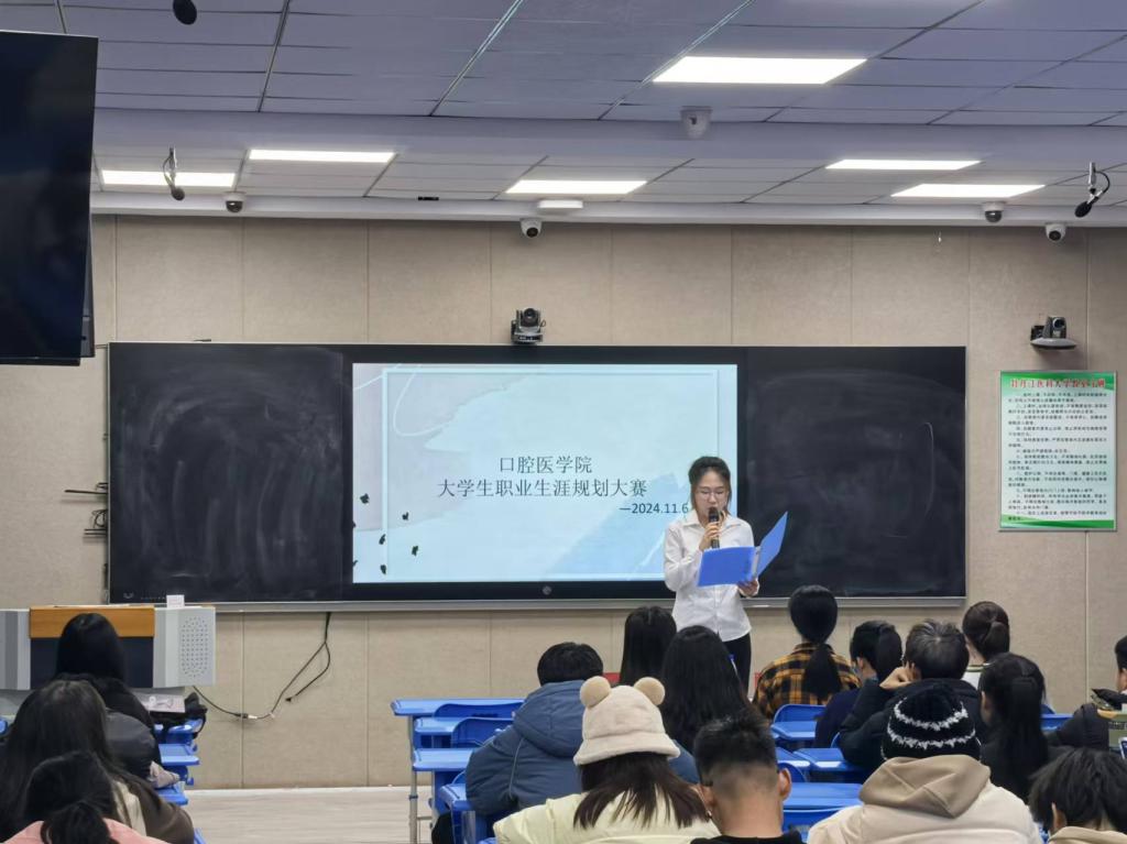 为增强学生职业生涯规划意识,引导学生以科学的态度和合理的方法规划自己的职业生涯,明确学习目标,帮助学生更好地适应经济社会对人才的需求,2024年11月6日,口腔医学院在药学楼4号中教室组织开展“筑梦青春志在四方,规划启航职引未来”大学生职业生涯规划大赛。口腔医学院实习就业科负责人宋颜竹,口腔基础教研室教师袁锐奇、李甜溪担任评委,来自不同年级的十余名选手参赛。