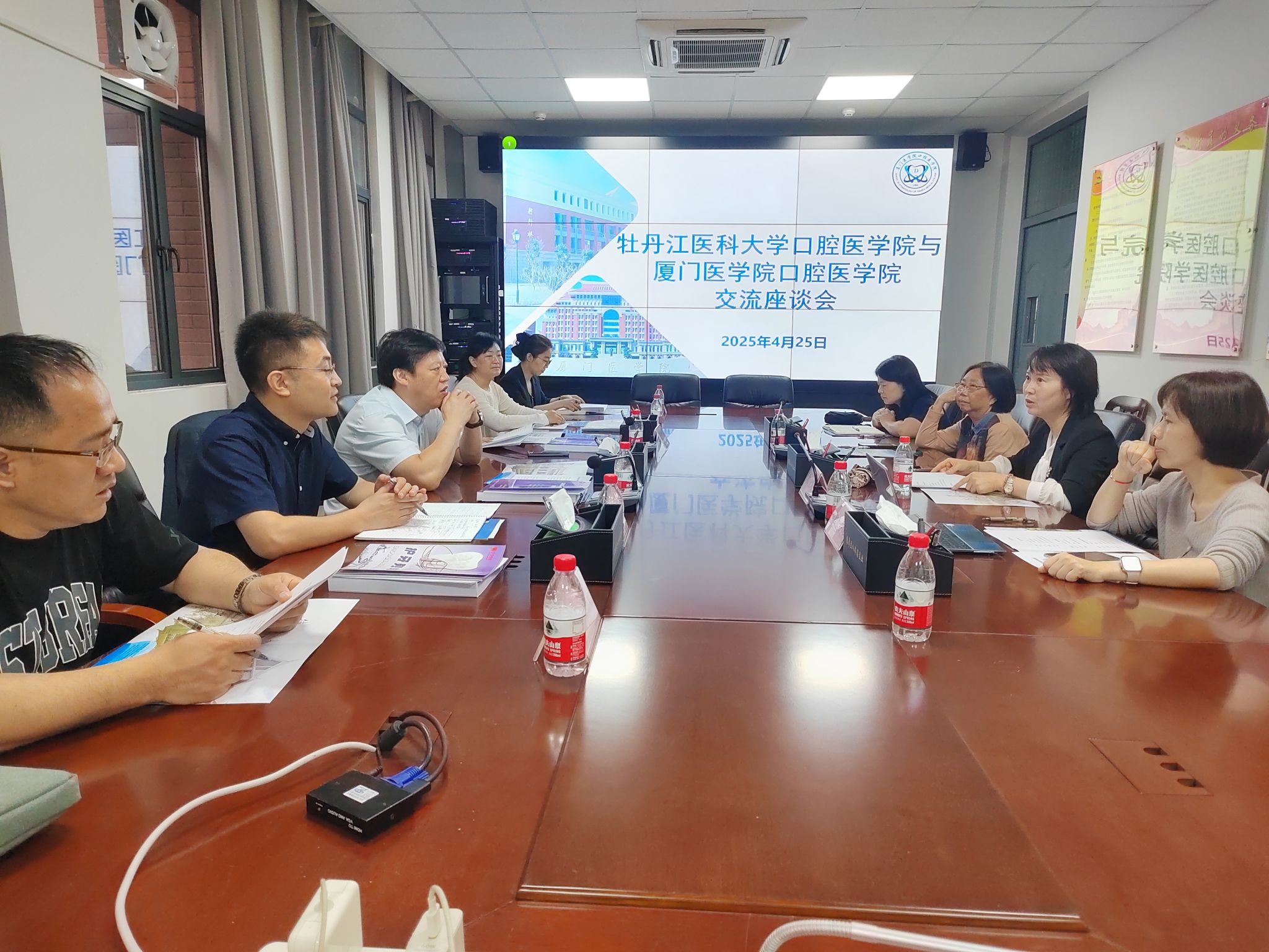 4月25日厦门医学院教务处处长韩银淑、口腔医学院副院长张志升、副院长陈钟带领各职能部门负责人与我院一行人员召开交流座谈会。会上,韩银淑认为专业认证领导小组需清晰界定各级职责,构建起上下联动、全员参与的工作格局,以此确保专业认证工作高效开展。张志升和陈钟分别就材料收集与整理、课程体系建设、教学方法创新以及学生培养模式等关键环节进行介绍。在后续的交流环节中,双方聚焦口腔医学领域,针对人才培养、课程建设、实验室建设、毕业实习基地建设等多个核心板块展开深度交流。