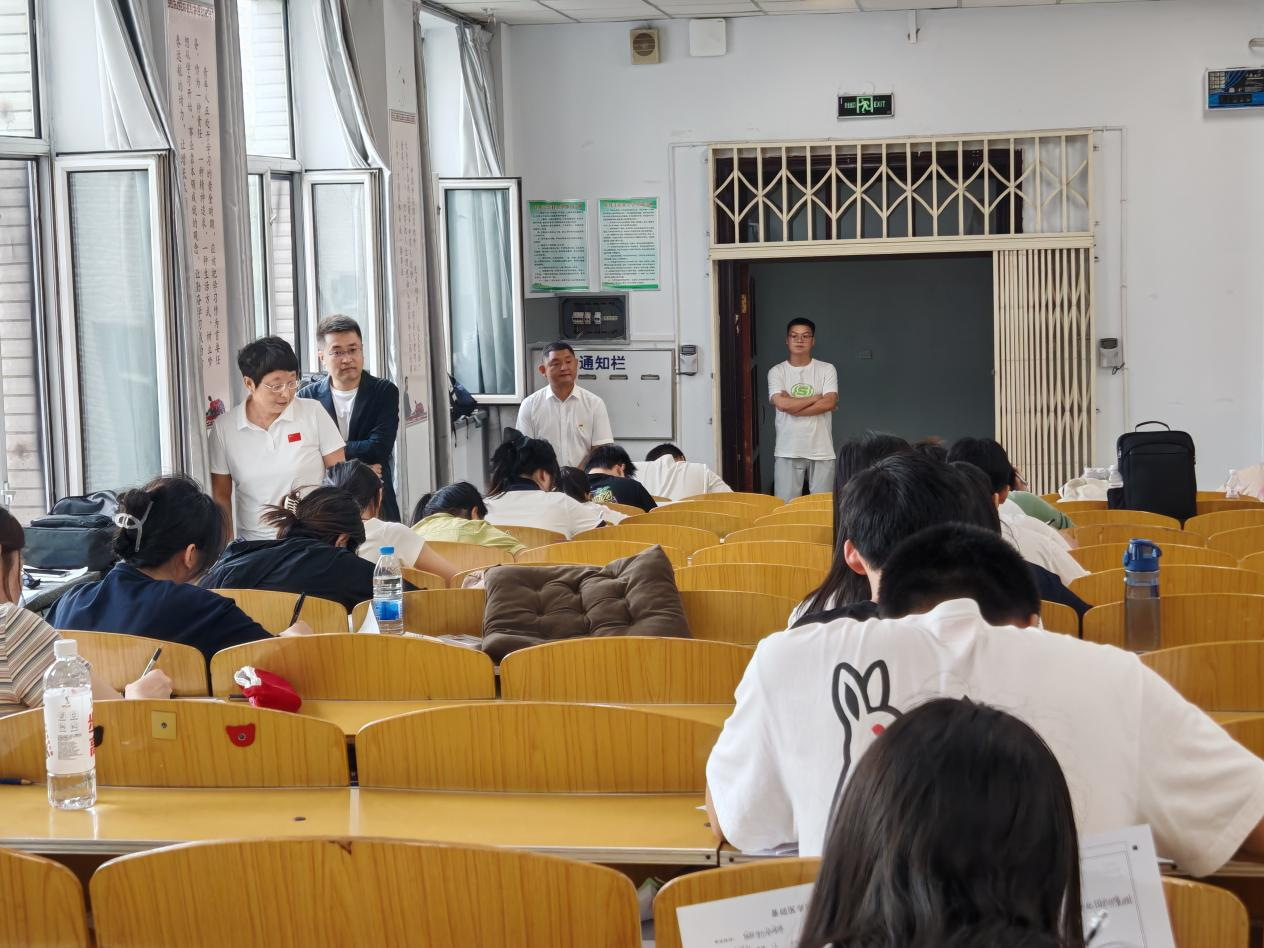 8月29日,口腔医学院党总支书记钱锐、院长袁辉带队赴考试现场开展考风考纪专项巡查,副书记王尊博、教务科工作人员及年级辅导员参加检查。