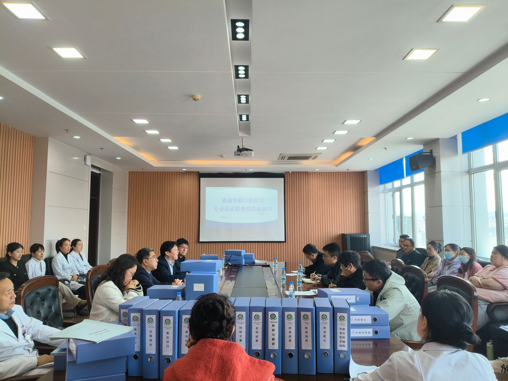 为进一步提升口腔医学专业认证工作质量,确保各项工作有序推进,2025年4月14日下午,学校专家组到我院开展专业认证检查指导。本次检查在临床实训技能中心16楼会议室进行,学校副校长胡文华、教务处处长宋高臣、教务处副处长王晓东、综合科科长刘明明及各学院专家莅临检查,口腔医学院全体教职工参与。