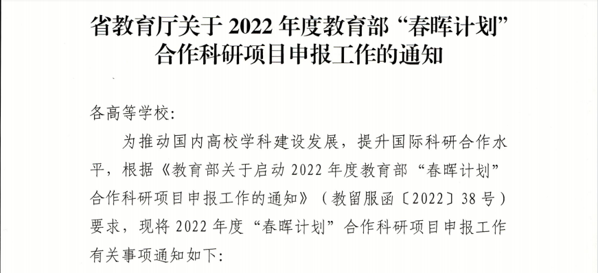 关于转发《省教育厅关于2022年度教育部“春晖计划”合作科研项目申报工作的通知》的通知