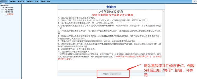 (4)查看评审专家意见,结合专家意见、共性修改要点修改项目。