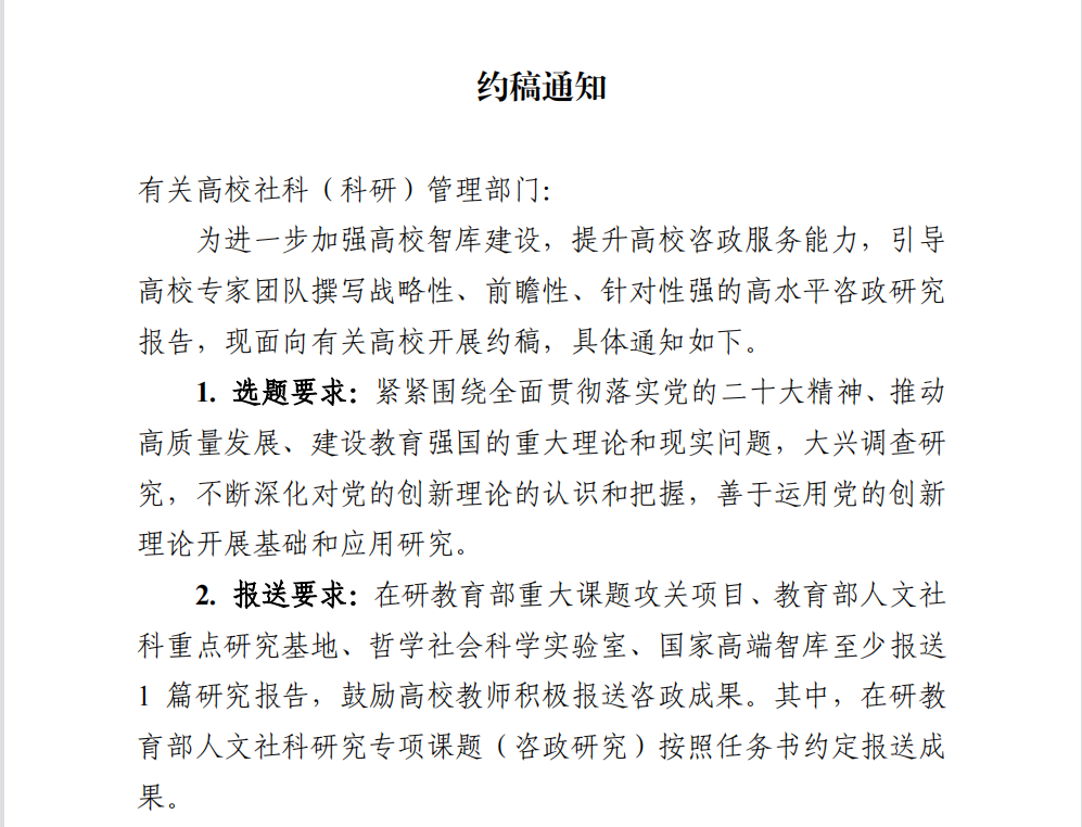 以下为转发社会科学司约稿通知,有意向的老师可详读通知,按通知要求准备稿件,并将研究报告电子版并发送至科研处邮箱:mdjyxykyc@163.com ,约稿无截止时间限制,全年均可接收,如发送邮箱请电话告知科研处。联系人:张老师6984356。