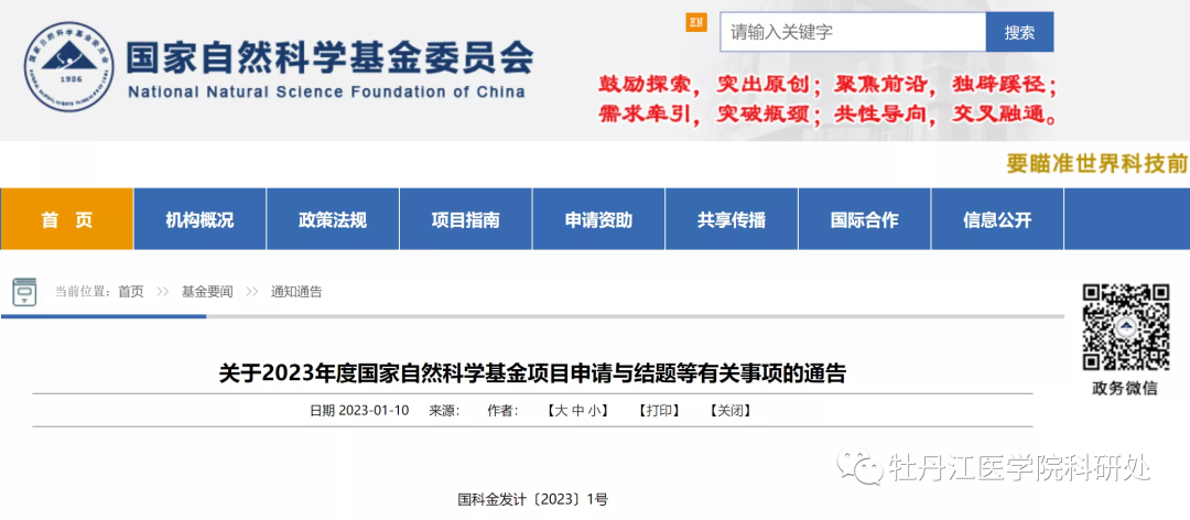 关于2023年度国家自然科学基金项目申请与结题等有关事项的通告