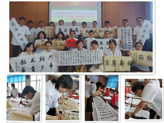 随后,支部党员以“传承红色经典”的主题,挥毫泼墨,抒发爱党爱国豪情,临摹党史经典。活动以党小组为单位,分别对党章、毛泽东诗词以及我党在历史中传承下来的经典著作进行毛笔字、钢笔字的临摹,通过现场临摹,使党员干部更加深刻地体会红色精神的内涵,激发党员们的感党恩跟党走。活动的最后,马克思主义学院直属党支部对优秀党员进行表彰,表彰在工作中不忘初心、勇挑重任、走在前列的先进典型。