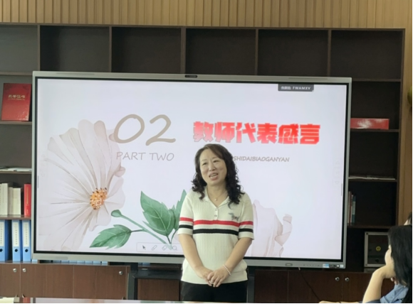 随后分别由马克思主义学院三十年教龄代表王艳芹老师,二十年教龄代表许晓晴老师,以及十年教龄代表曹宏伟老师作为老教师代表发言,他们的讲话同样是句句入情入理,掷地有声。