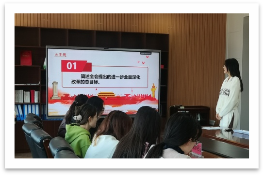 本次竞赛内容不仅是对课堂教学专题的延伸和拓展,同时丰富了形势与政策课的教学形式,报名环节的踊跃参与和竞赛过程中的良好表现,充分显示出第二课堂活动既调动了学生的学习积极性,还对第一课堂的学习效果起到强化和巩固。同学们在交流中说,从党的十一届三中全会、十八届三中全会到二十届三中全会,我们看到国家改革的步伐从未停止,且不断向广度和深度进军,作为新时代的大学生,我们要明白肩上承担着实现中华民族伟大复兴的历史使命,我们必须把青春奋斗融入祖国的改革事业,为实现中国式现代化的宏伟蓝图贡献自己的青春力量。
