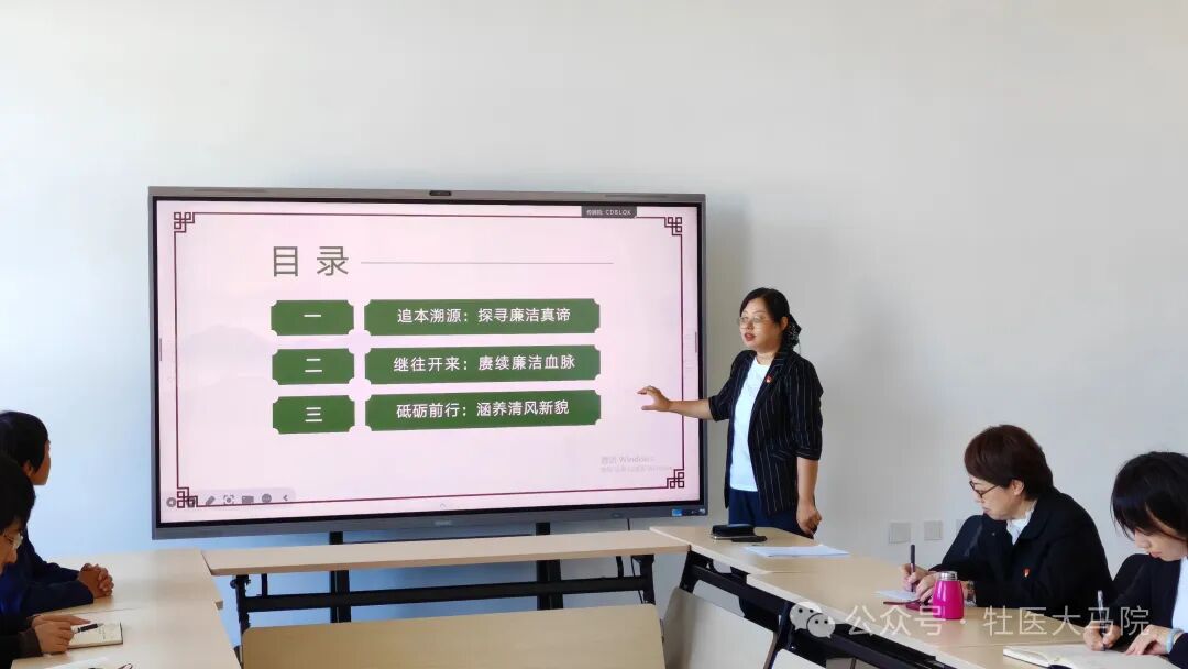 活动伊始,“学习廉洁文化”环节为全体党员带来深刻的理论滋养。于杰老师以《廉脉承千古 清风启新程》为题,从三个维度系统梳理了不同时期廉洁文化的传承脉络与时代价值。她着重强调:廉洁是师德师风的“生命线”,不仅关乎教师个人的道德修养,更直接影响着学生的价值取向。作为思政课教师,肩负着为党育人、为国育才的神圣使命,更应率先垂范,争做廉洁从教的坚定践行者与积极引领者。