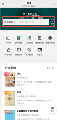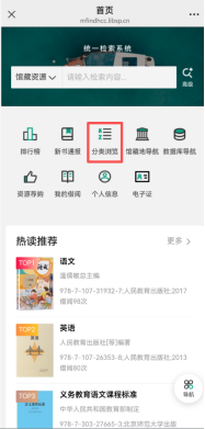 通过上方检索框检索馆藏资源书目信息,或通过分类浏览查看馆藏信息