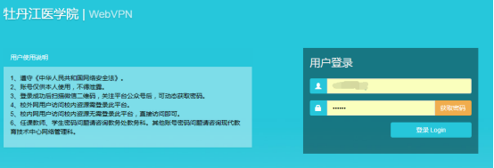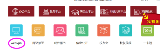 2. 点击主页左下角“webvpn”,进入登录页面,输入账号,密码