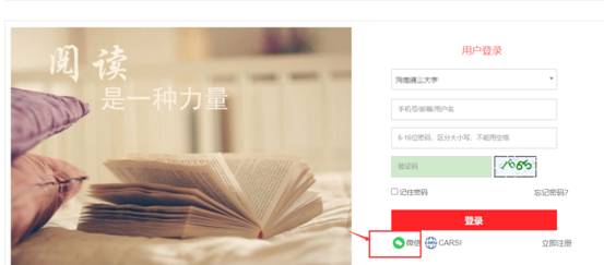 输入PC端网址,直接点击微信图标,用之前IP范围内认证登录过的微信扫描页面上的二维码即可登录阅读。