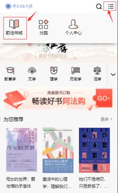 2、在首页导航栏直接点击“书城”栏目,即可试读相关本馆未开通试用数据库中每本电子图书整书页数的10%-30%。