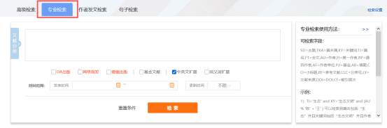 专业检索主要用于图书情报专业人员查新、信息分析等工作,使用运算符和检索词构造检索式进行检索。
