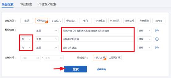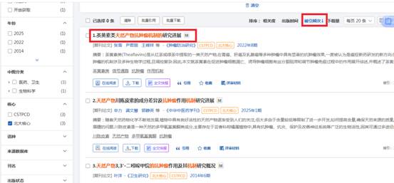 课题分析:被北大核心期刊收录关于“天然产物的抗肿瘤机制”文献多少篇?将研究主题拆解为“研究对象”与“研究维度”两个核心模块,并通过逻辑运算符进行组合。