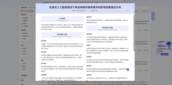 针对近五年发表的核心期刊论文,平台提供了全文快报功能——从19个维度预抽取信息,内容覆盖更全面、信息更稳定。