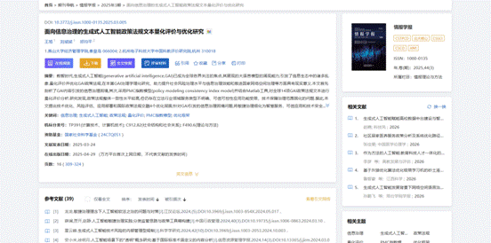 新版文献详情页采用了国际流行的文献展示布局,加强内容分类。点击详情页中作者、作者单位、关键词等信息,可以跳转到相应的知识脉络页。