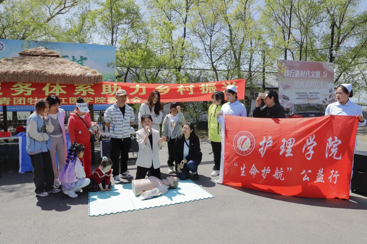 护理学院急救知识培训项目是我校“生命护航公益行急救技术专业化志愿服务培训基地”的品牌项目,该培训团现场为群众开展了心肺复苏急救技术培训。