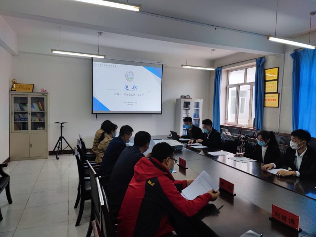 为贯彻落实共青团中央、教育部、全国学联联合印发的《关于推动高校学生会(研究生会)深化改革的若干意见》的精神,进一步强化我校学生会改革,全面客观地评价学生会组织的工作实绩,提升学生会工作的科学化水平和学校发展、学生成长的整体推动力,2021年10月4日,我校在学生处212会议室举行校学生会工作人员述职评议会。学校团委全体老师、学生处思想教育科科长侯智博、学生科科长张强、校学生会第三十一届主席团及各部门负责人、学生代表共同参加会议。