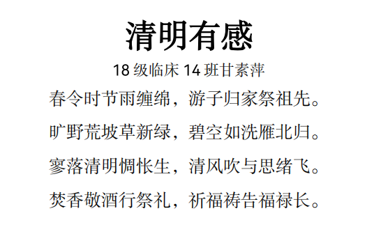 与此同时,校团委、各基层团委,校院两级学生组织在清明节来临之际,充分利用团属新媒体平台加强对传统节日的宣传与教育,纷纷介绍清明节的由来、文化知识等,将传统节日进行全方位、多角度宣传,营造校园浓浓的学习传统文化节日氛围。