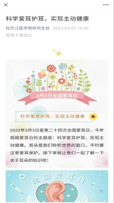 研究生处团委的指导下,牡医风华研究生志愿者团队广大研究生志愿者开展了为“爱耳护耳,健康听力”的健康教育宣讲。同时志愿者团队抓住宣传窗口期,用运营的微信公众号发送“爱耳日”健康宣传推文,以全面提升本次活动的关注度和影响力。本次活动贯彻了党中央关于构建社会 主义和谐社会的英明决策,体现了党和政府对弱势群体的亲切关怀,充分显示爱耳活动蓬勃的生命力和可持续性发展能力。