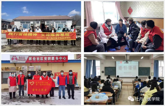 第二临床医学院“领航”党员志愿者服务队同牡丹江医学院附属第二医院义诊专家团队一起于3月3日来到林口县柳树镇三道村,开展“践行雷锋精神,义诊服务基层”大型义诊活动。3月1日,党员志愿者们来到爱民区祥伦社区,共走访了4户老人家。志愿者们为老人测量血压,对于血压高的老人进行了医疗知识的普及和建议。3月3日开展“清理城市‘牛皮癣’”主题志愿活动,组织学生志愿者对结对社区的小区墙面、公共设施等胡乱张贴的小广告进行清理。并于3月3日,组织全体学生在阶梯教室和党员之家观看影片《雷锋》及相关影视作品,重温雷锋精神。