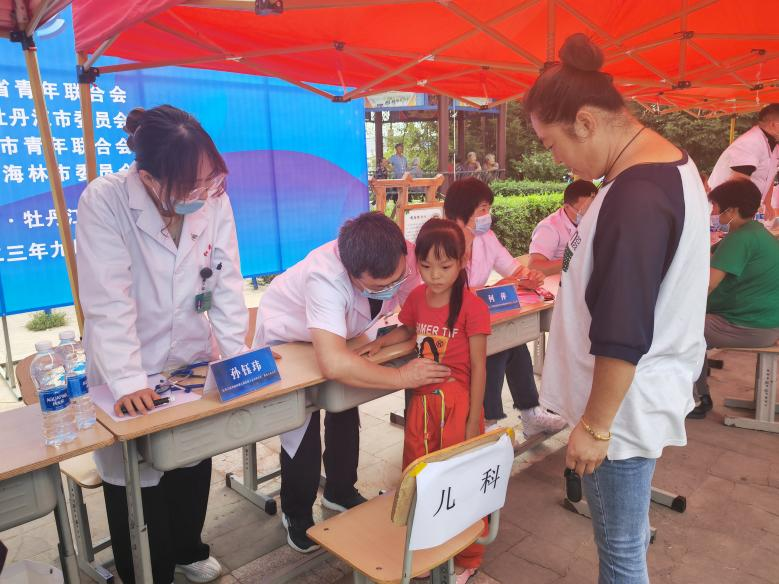 为深入学习贯彻习近 平总书记关于防汛救灾工作的重要指示精神,充分发挥省、市青联委员在打赢防汛救灾和恢复重建攻坚战中的生力军作用,9月5日,由黑龙江省青年联合会主办,团牡丹江市委、牡丹江市青年联合会、团海林市委承办的“青”力前行·“义”起守护——省、市青联委员健康义诊、防疫宣传活动在海林市长汀镇成功举办,黑龙江省青年联合会医药卫生界别主任、海林市政府副市长程功,牡丹江医学院团委书记王新,团市委副书记葛艺出席活动。来自各医疗领域的省、市青联委员,医学专家及青年志愿者共50余人参加活动,累计接诊患者200余人次,发放宣传物料300余份。我校团委王新书记带领附属红旗医院儿科孙钰玮主任团队、神经内三科徐庆副主任团队及我校青年志愿者参加了本次活动。