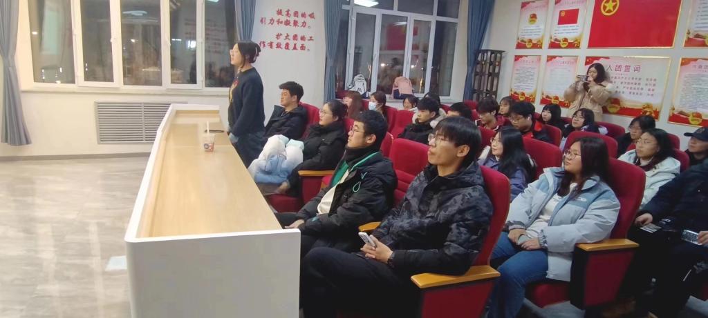 学习党的创新理论,争做新时代好青年。为深入贯彻学习《关于面向广大团员和青年开展学习贯彻习近平新时代中国特色社会主义思想主题教育的通知》精神,2023年11月27日下午六点,校团委直属社团组织国旗仪仗队、场地管理服务中心、大学生军乐团、蓝色号角话剧团在青岂学堂开展青年大学习第三期“强国复兴”的集中学习。