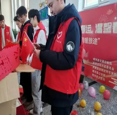 此外,张文博同学还参加了塔河县团县委举办的2024年青年志愿者服务春运“暖冬行动”,为出行旅客提供热情服务,在候车大厅、出、进站口,为旅客们提供提拿行李、秩序维护等服务,发放小国旗、福字等物品,营造出浓厚的节日氛围。还积极开展安全宣传,提醒旅客注意出行安全,提高旅客的安全意识。为春运工作保驾护航。