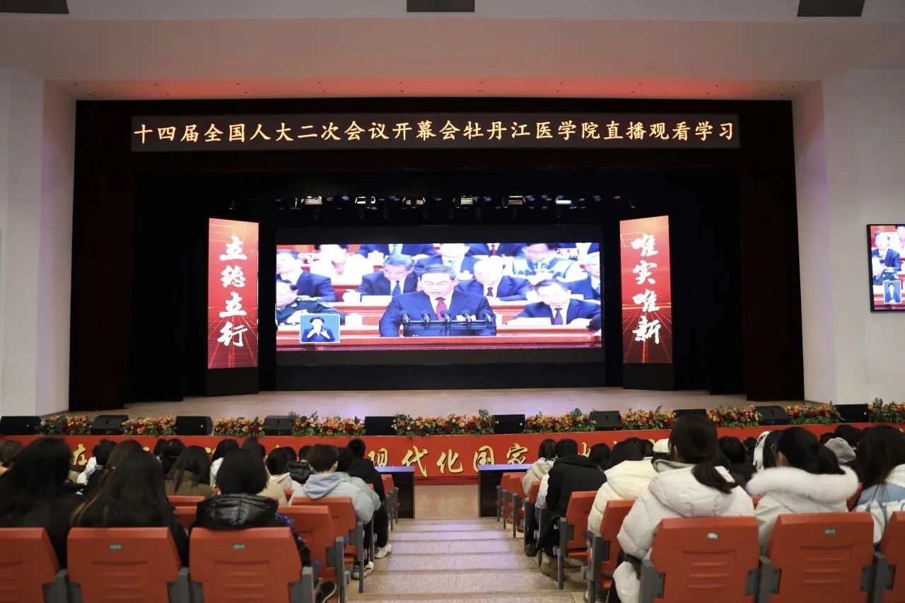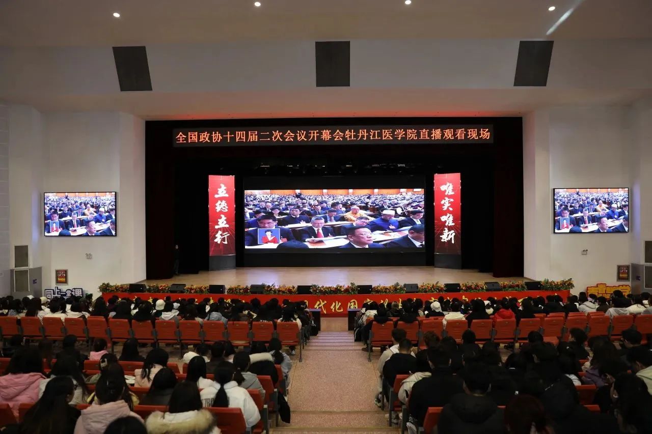 为了让牡医青年学生了解时事政治,关注国家社会发展,第一时间关注两会动态、学习两会精神,提高自身政治素养和责任担当,做合格社会主义建设者和接班人,3月4日下午15:00和3月5日上午9:00,学校团委组织我校青年学生在文体馆大礼堂集中观看了全国政协十四届二次会议开幕会和十四届全国人大二次会议开幕会直播。