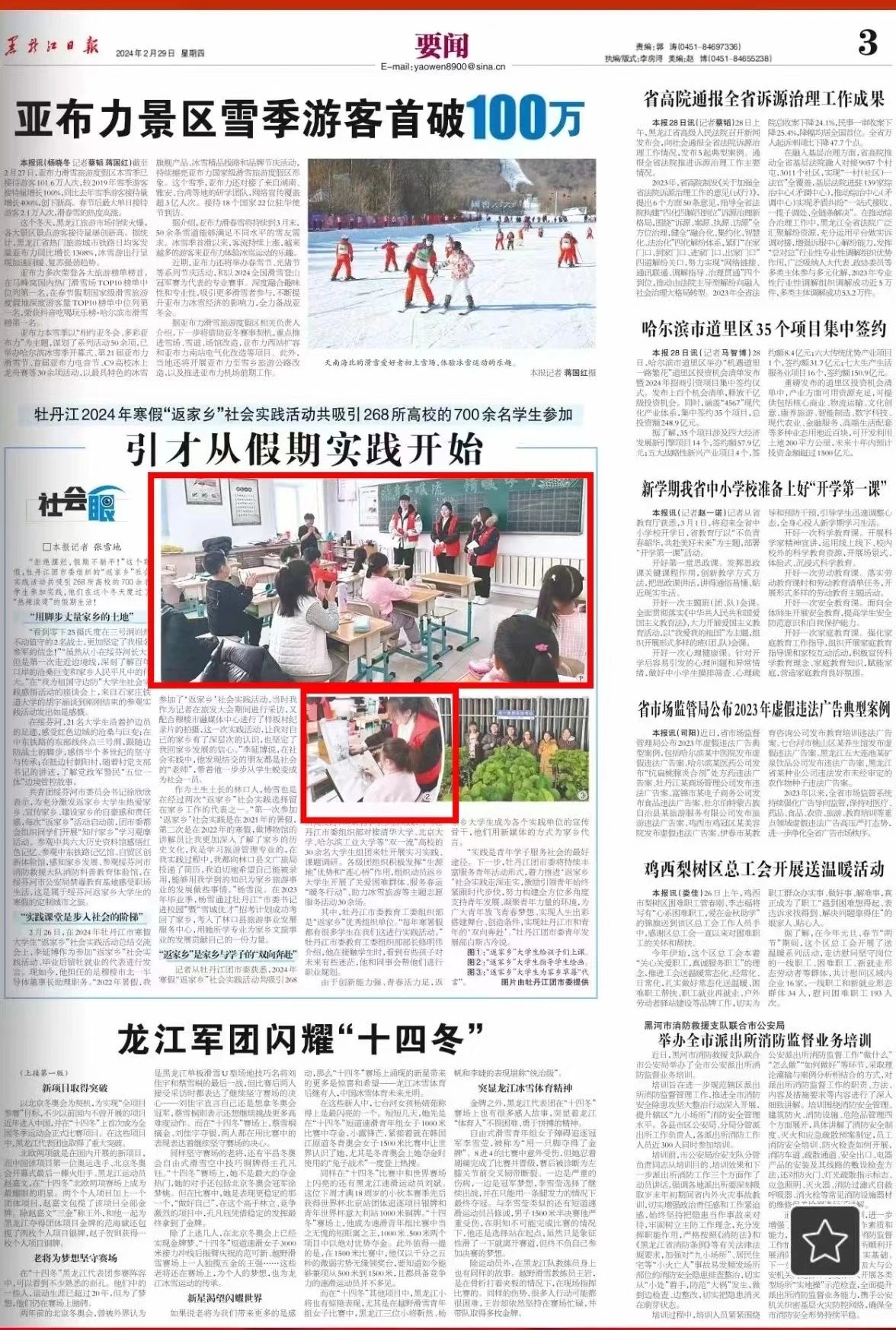 此外,牡丹江作为李昊的第二故乡,寒假期间李昊同学还响应学校号召参加了牡丹江市“大学生返家乡”志愿者活动中,他来到了牡丹江团市委进行政务实习,由于家距离工作单位遥远李昊每天都是天黑出发,不敢有一刻松懈。