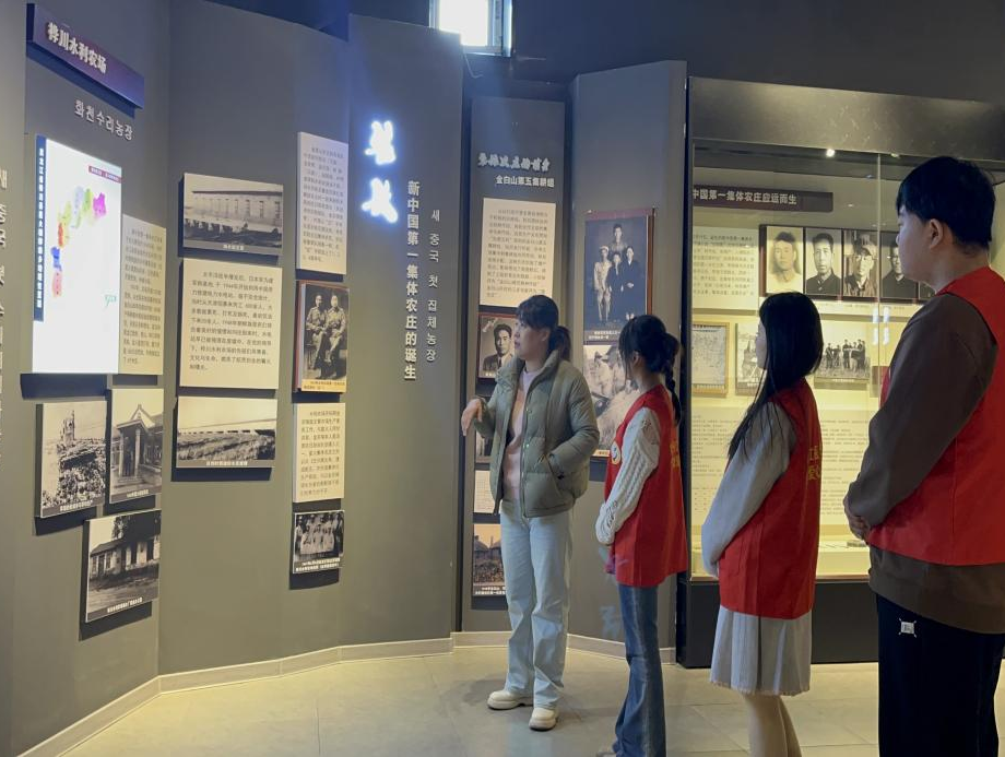 1 月 22 日 ,甘棠爱心之家志愿者们乘车前往桦川县朝鲜族乡星火村。到达后,星火村妇联主席韩柳花带领志愿者们简单参观了星火村。志愿者们向柳花姐学习了“青年”、“星火村我们来了” 的朝鲜语说法,还学习了朝鲜族传统舞蹈《红太阳照边疆》。接着 ,柳花姐带着志愿者们参观星火村村史馆 ,村史馆陈列了近年来星火村在脱贫攻坚这条路上所做出的卓越进步, 志愿者们体会到优秀人才为家乡服务乡村振兴战略才能真正得以实践 ,帮助贫困地区脱贫致富。1月23日,志愿者们换上了朝鲜族服饰品尝地道的朝鲜族美食。