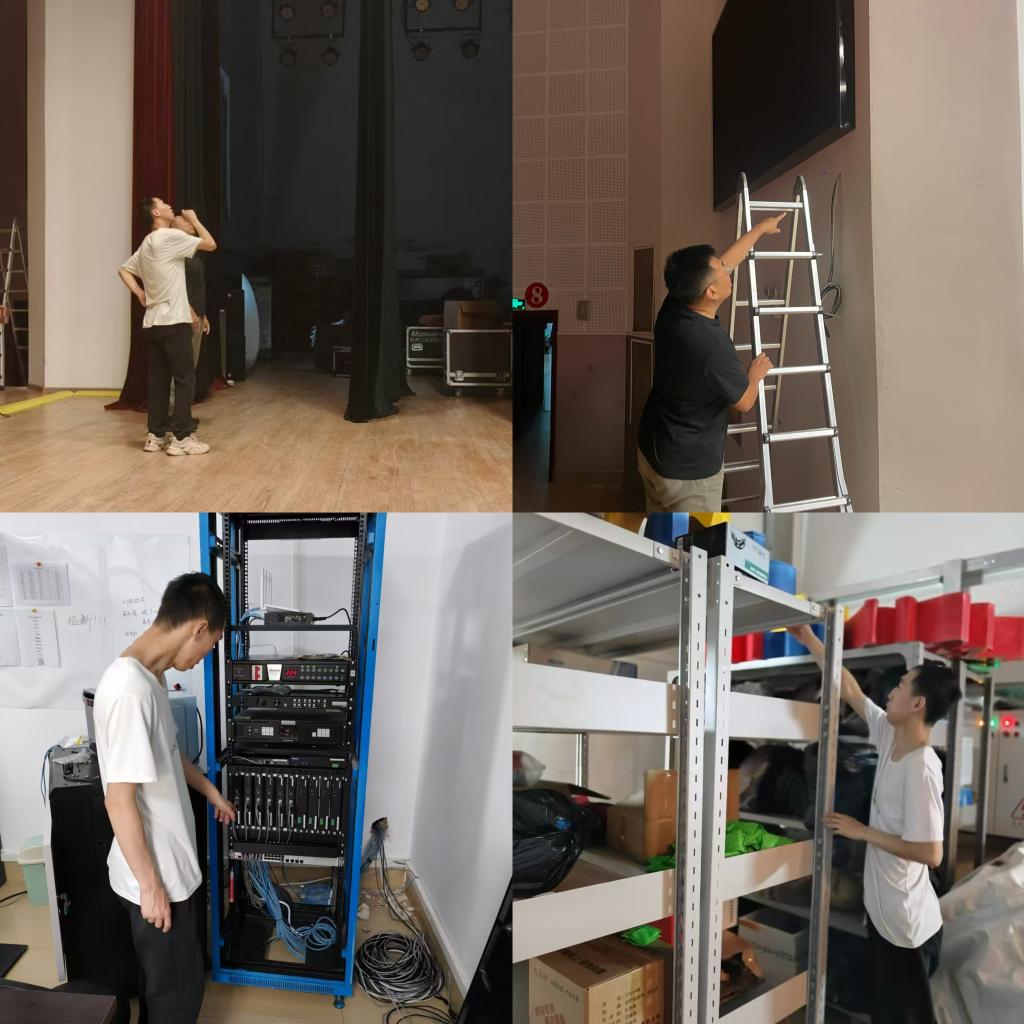 为确保学校文体馆演播大厅LED电子屏项目升级改造顺利完成以及开学前期的各项准备工作,校团委书记王新带队于8月18日对文体馆演播大厅、设备操作间等重点区域进行了全面的安全隐患排查,并对文体馆演播大厅正在进行的LED电子屏安装升级改造项目和灯光维修施工现场进行了安全防患工作指导。