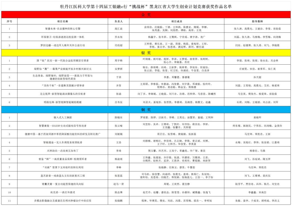 近日,共青团黑龙江省委、省教育厅、省科技厅、省人社厅、省科协、省学联联合发布了《关于表彰第十四届工银融e行“挑战杯”黑龙江省大学生创业计划竞赛获奖集体和个人的决定》,我校在本次大赛中再创佳绩。