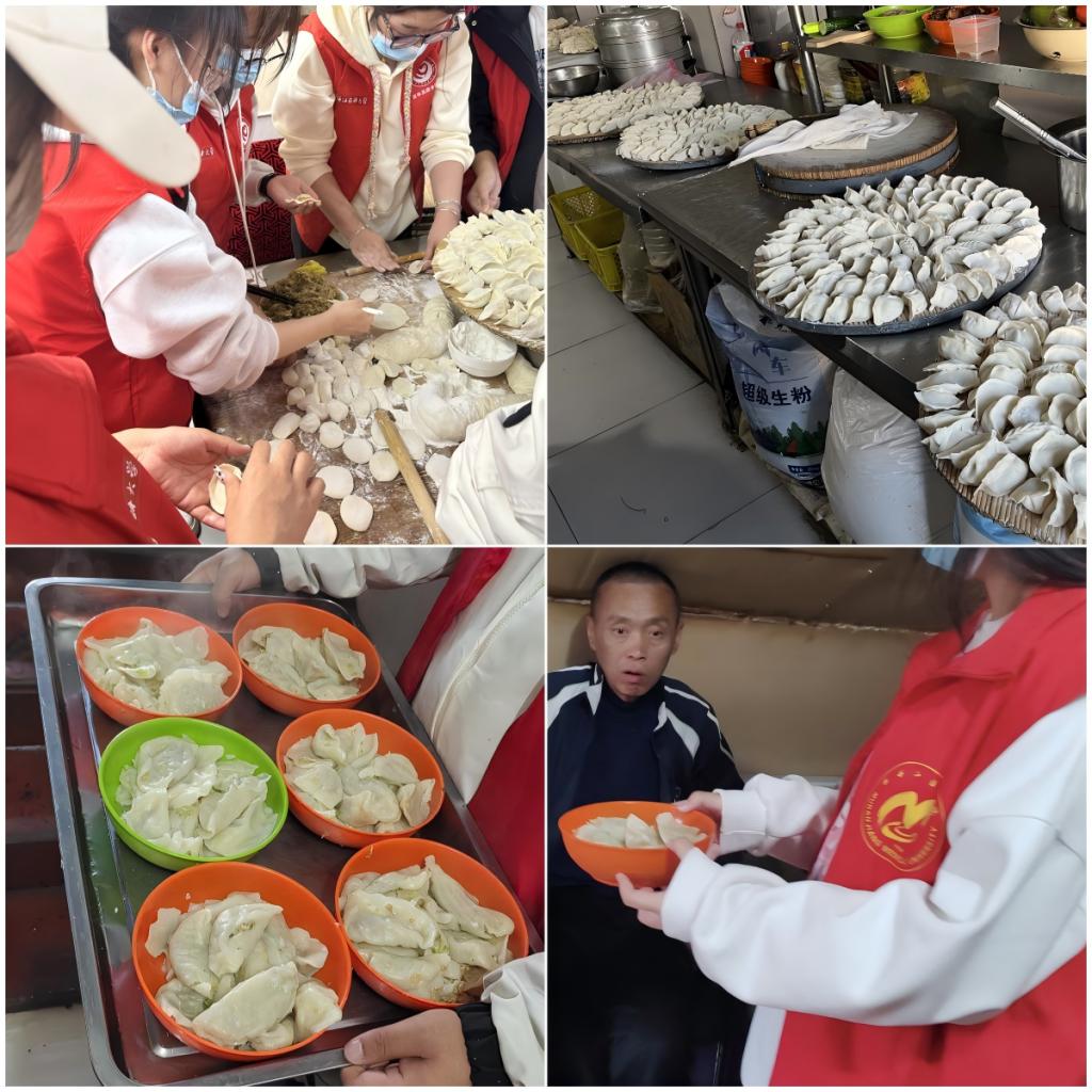 在敬老院食堂里,志愿者们还特意准备了100份饺子馅的食材,为老人们亲手包制爱心饺子。食堂内一派繁忙景象,调馅、擀皮……志愿者们分工明确、密切配合,有条不紊地忙碌着。每个志愿者带着对老人们的关注和温暖,用心包裹每一个馅料,包出了一个个饱满的水饺。经过两个多小时的团结协作,一个个饱满的饺子整整齐齐摆满了托盘。让老人们感受到了家的温暖,也让志愿者们更加深入地了解了老年人的生活和需求。