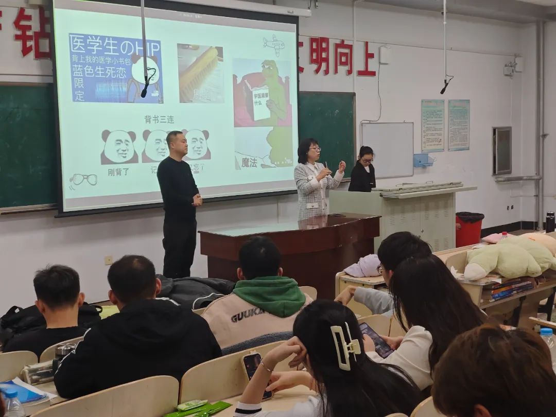 首先,朱敏讲述了开展本次交流会的目的及意义,指出开展本次活动是为了促进彼此之间的交流,分享好的学习经验,营造更良好的学习氛围。随后,胡婉玉分享了学习影像诊断学的经验,强调了课前做好预习、上课认真听讲、课后及时复习的重要性,建议同学们建立错题本,从错题中得到启发,避免错误的再次发生。张晓鹏分享了自己的考研经验,指出本科期间要学好专业课,为考研复试打好基础,实习与考研是相辅相成的关系,可以促进对知识的理解,希望学弟学妹要珍惜在校时光,利用好学校的一切教学资源提升专业能力和综合素质。最后,宋海南围绕考研、就业、规培等进行详细讲解,分析考研、就业等当前形势,解答同学们心中疑惑,帮助学生更加清晰准确的规划目标,鼓励所有同学明确目标并为之而努力奋斗。