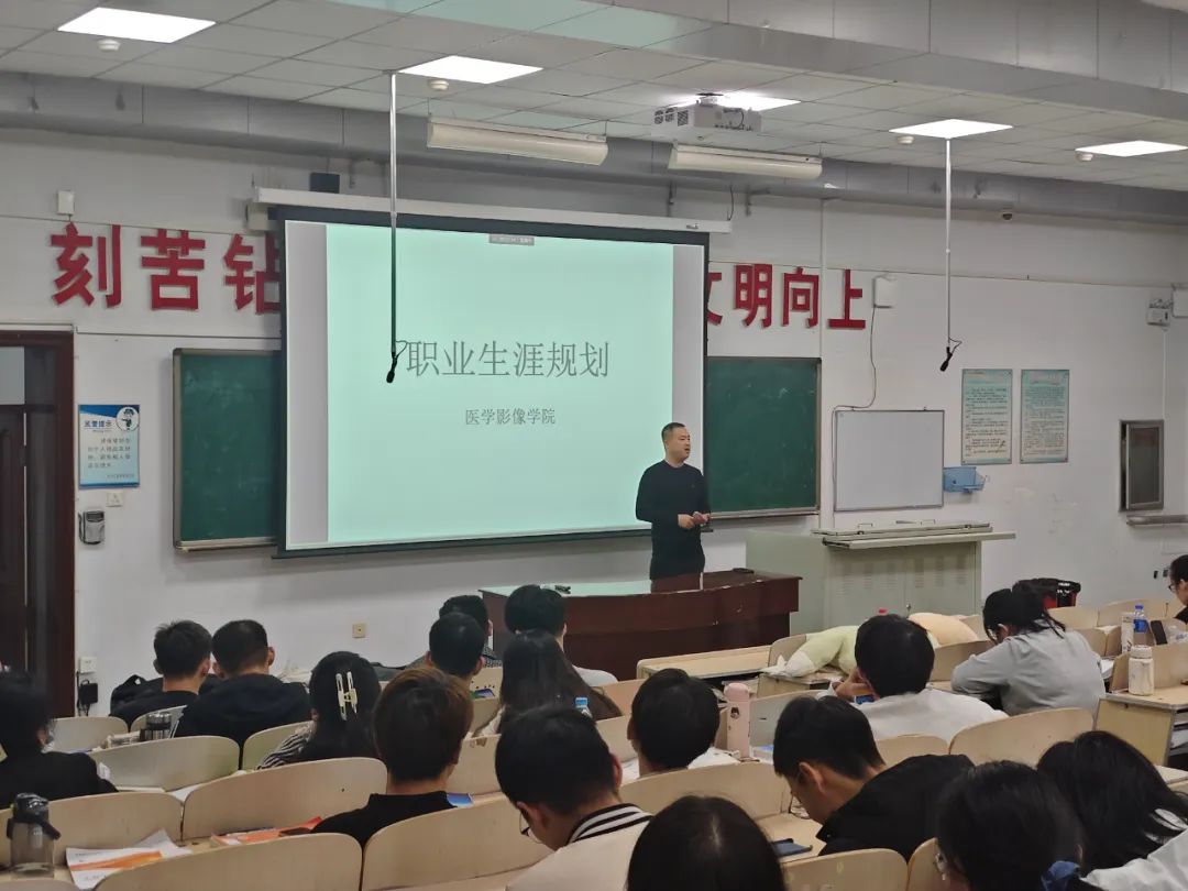 为进一步提升学生学习能力,帮助学生明确未来发展方向,合理进行职业生涯规划,助力学生更好成长。2023年10月30日,医学影像学院在药学楼阶梯三教室举办了学业指导与职业生涯规划交流会。医学影像学院副处级辅导员宋海南,红旗医院核磁共振科室核磁共振副主任、影像诊断教研室副主任朱敏,辅导员赵春阳,国家奖学金获得者2019级医学影像学专业胡婉玉,优秀研究生代表张晓鹏出席本次会议。医学影像学专业2020级全体学生参加了本次会议,会议由宋海南主持。