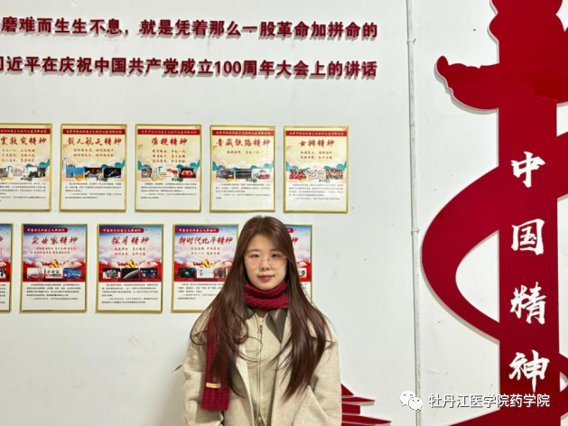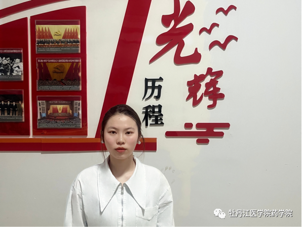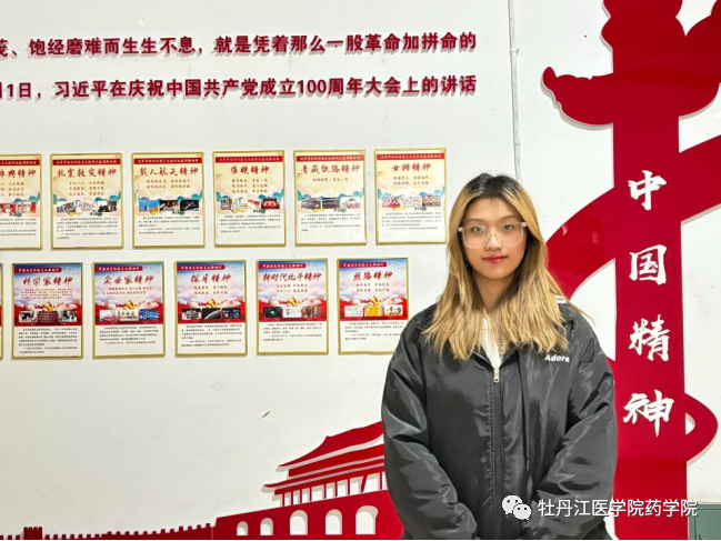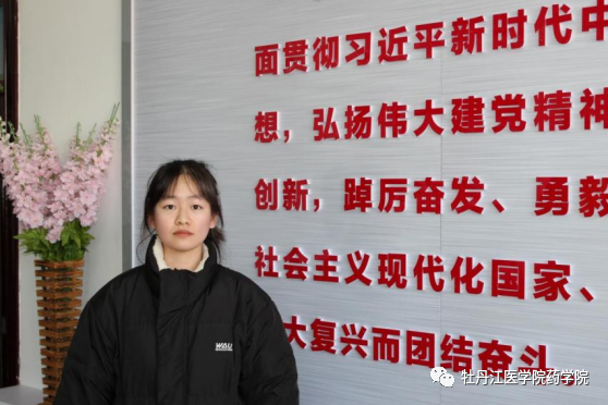 刘蔓仪,在校期间综测排名连续两年位列专业第一,担任2021级药物制剂02班学习委员。荣获第九届中国国际“互联网+”大学生创新创业大赛黑龙江赛区铜奖、第十八届工商银行“挑战杯”黑龙江省大学生课外学术科技作品竞赛银奖、第二届牡丹江市大学生中共党史翻译大赛二等奖;“优秀学生干部”等荣誉。她在努力提升自己的同时,积极帮助身边的同学,在巩固自己专业知识的同时体现自己的价值。