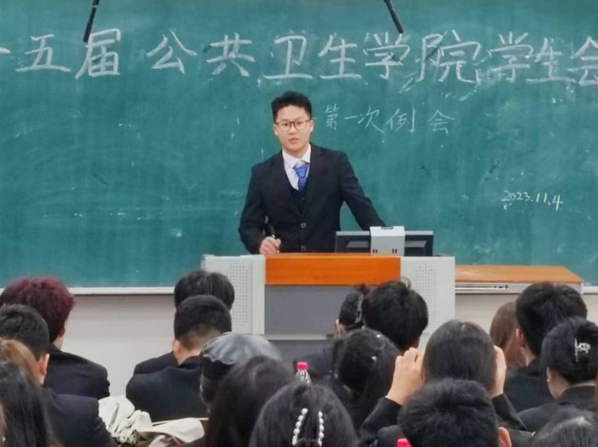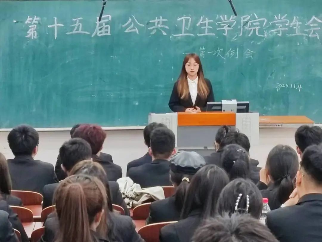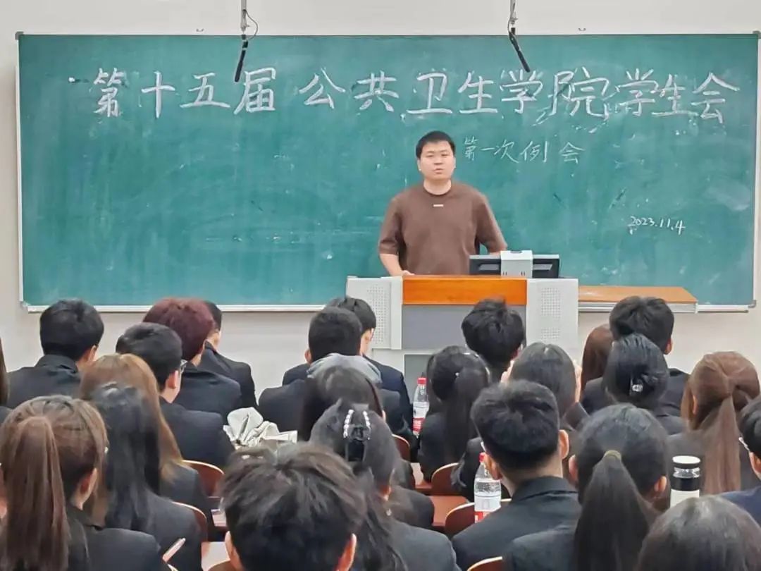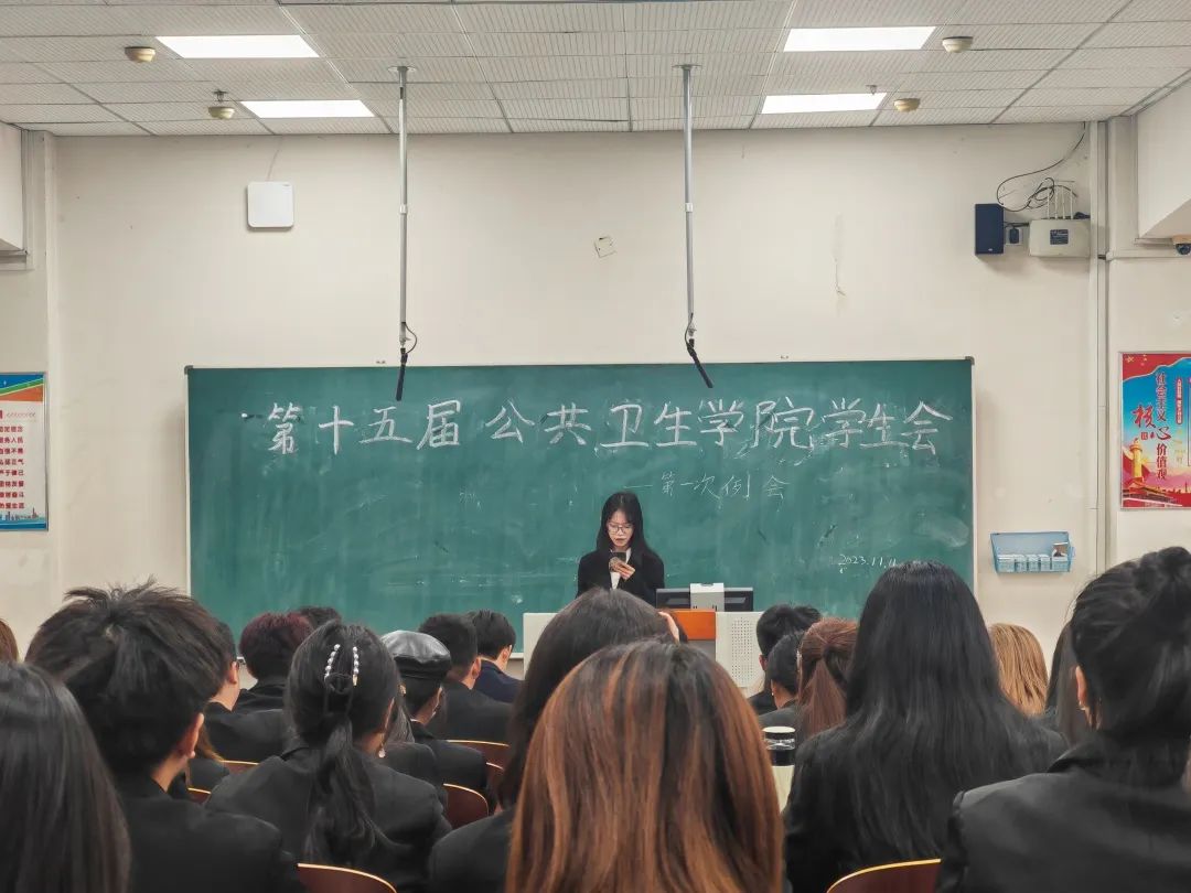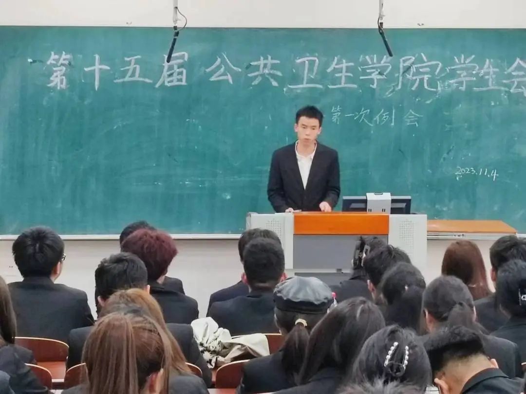 为总结公共卫生学院学生会开学以来的工作情况,促进学院后续活动有序开展,明确各部门职责,提高工作质量与效率。公共卫生学院于2023年11月4日在科技楼阶梯三召开第十五届学生会第一次例会,本次会议由学院第十五届学生会主席彭震振主持,团委负责人刘飞受邀出席,学生会全体成员共同参加。
