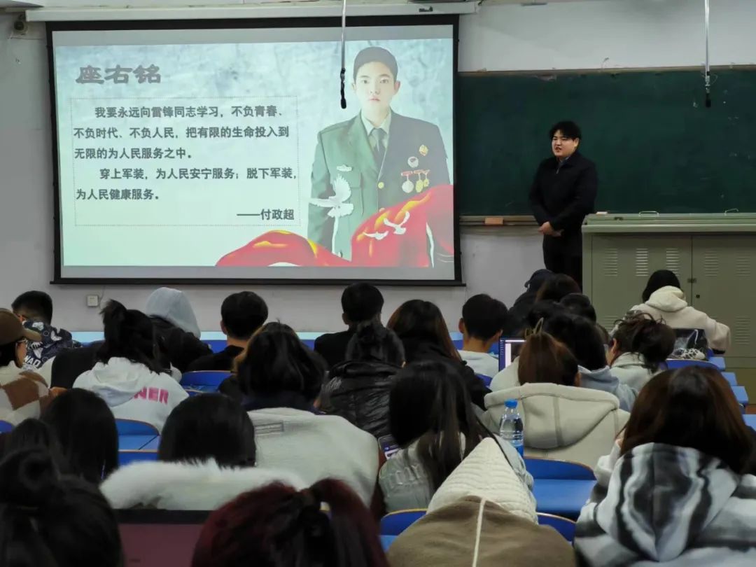 为进一步营造学院良好的学习氛围,提高学院教育质量,同时加强学生的自身修养与学习的积极性,帮助同学明晰现阶段奋进方向与未来发展目标,卫生管理学院于10月31日在教学楼阶梯二举行2023级“奋斗擦亮青春底色,行动践行时代嘱托”规划未来动员分享会暨2023年下半年征兵动员大会,会议由牡丹江医学院首届“励志之星”、退役士兵付政超同学分享,23级全体同学参加。