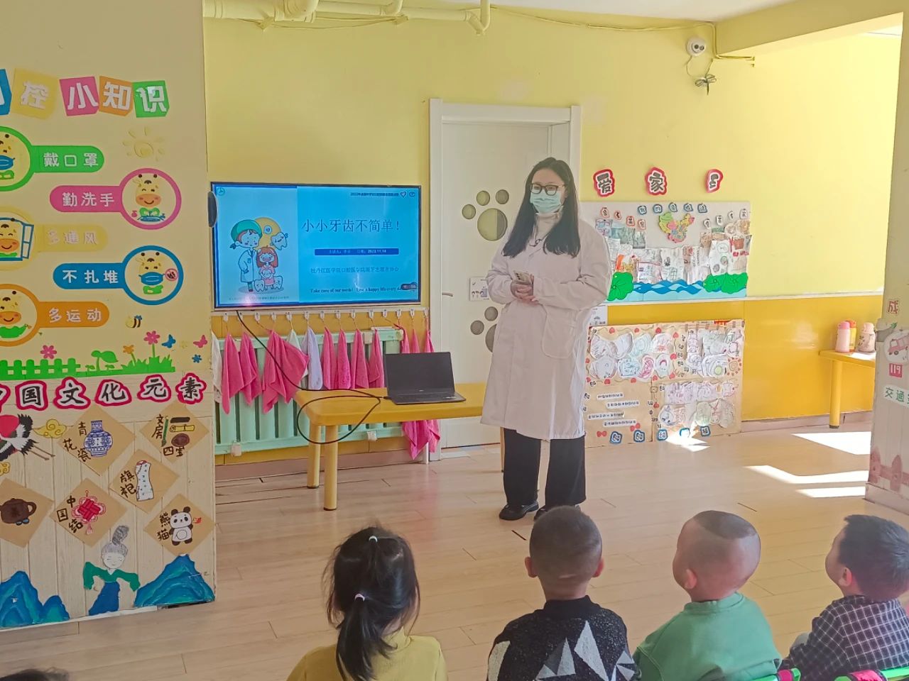 为了提高小朋友对口腔健康的认识,保护儿童口腔健康,传授正确牙齿保护方法。口腔医学院萌牙志愿服务队于2023年11月14日在启蒙幼儿园组织开展牙齿健康志愿宣讲活动,通过讲解、互动游戏等形式,向小朋友们传授科学的牙齿保健知识。