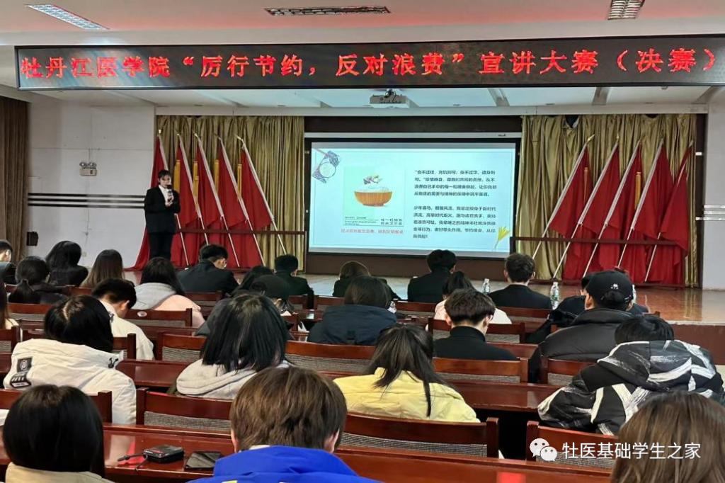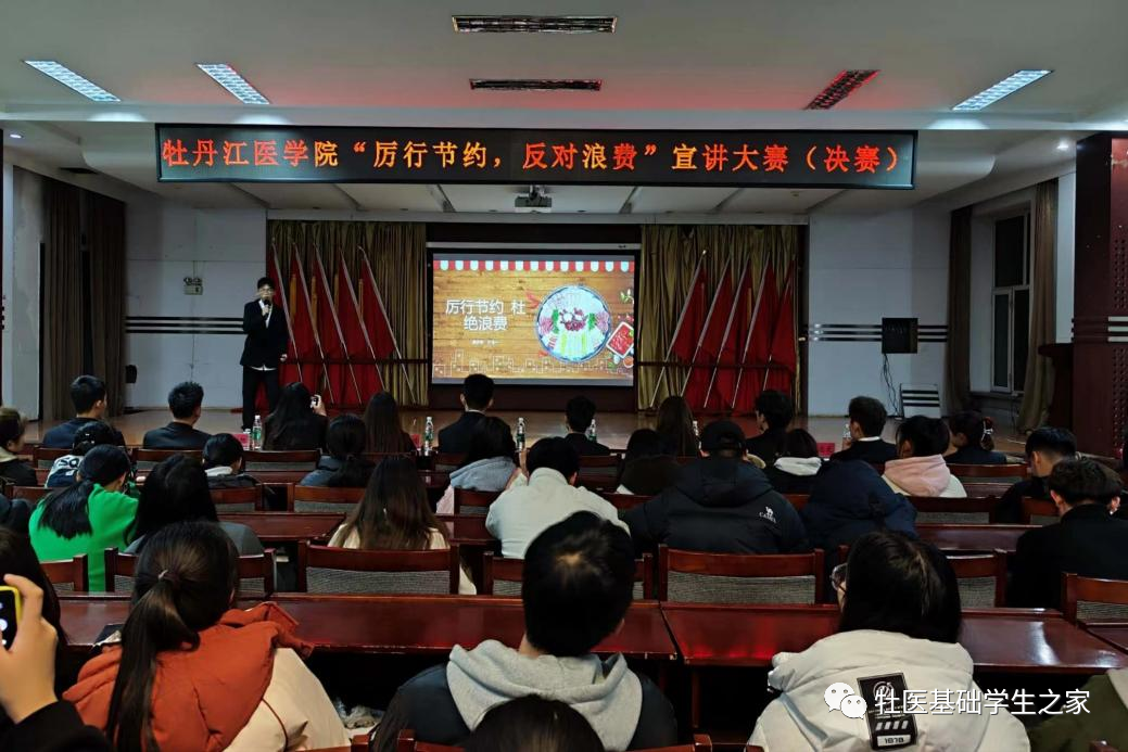 为弘扬中华民族传统美德,提高全校师生的环保意识和文明素质,共同为保护地球贡献力量,由牡丹江医学院团委主办,基础医学院团委承办的 “厉行节约 反对浪费”宣讲大赛决赛于2023年11月10日在基础楼多功能厅举办。