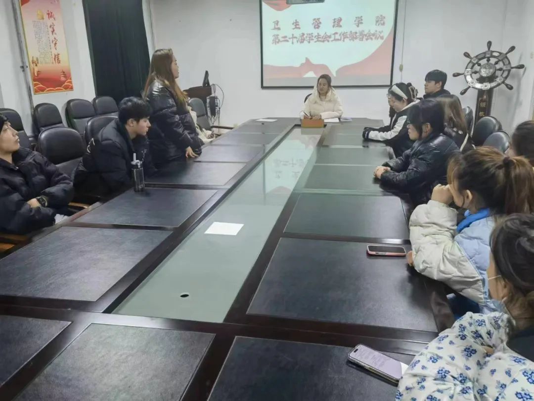 为进一步强化学生会内部管理和职能建设,调动各部门成员工作的积极性和创造性,加强各个部门的联系与沟通,规划梳理好下一阶段具体工作思路与方法,推动学生会管理工作的科学化、规范化,增强学生会全体成员的自我教育、自我管理、自我服务能力,提高团学干部队伍政治素养和工作能力,11月21日下午五点十分,卫生管理学院学生会在综合楼三楼会议室召开了工作部署会议,学生会各部部长及主席团参加本次会议。