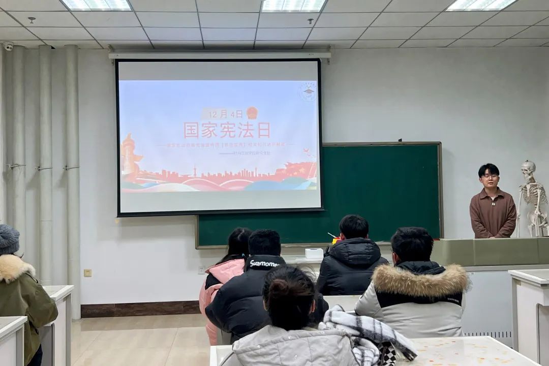 “法立于上,教弘于下。”宪法是国家的根本大法,是治国安邦的总章程。今年12月4日是第十个国家宪法日,为深入学习贯彻习近平法治思想,落实“八五”普法规划,推动全省教育系统学习宣传宪法,弘扬宪法精神,维护宪法权威牡丹江医学院研究生处于2023年11月30日18:30在临床技能实践中心610召开了国家宪法日暨宪法宣传周【普法宣传】相关知识的培训解读会议。