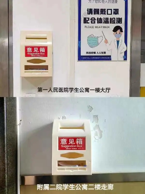 为了更方便同学们对学校教学、后勤、食堂餐饮等方面提出意见更近一步服务广大同学,第二临床医学院分别在附属二院和第一人民医院学生公寓设立了校园意见反馈箱,作为学校与学生搭建沟通的桥梁,让同学们能有沟通表达的渠道,无论是学习或是生活上的问题,都可以发至意见箱,欢迎大家前来反馈!