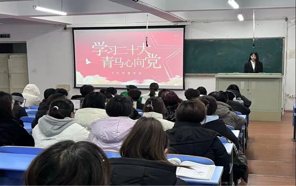 为深入学习贯彻落实党的二十大精神和习近平总书记同团中央新一届领导班子集体谈话时的重要讲话精神,着力培养管院学子的业务能力和综合素质。2023年12月5日,卫生管理学院团委举办了2023年“青马讲给青年听”青马工程培训班——学习二十大,青马心向党。本次培训在管教阶梯二进行,由学生代表孙瑜彤主讲,全体23级学生参加培训。